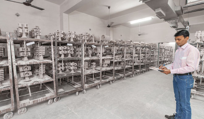 After the cooling of cast shells, ceramics are removed by mechanical vibration, and then parts get separated by cut-off machines and then gate grinding by abrasive tools.