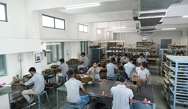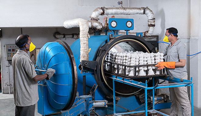 The wax inside the newly built shell is now removed. Dewaxing is done using a steam-dewaxing autoclave or flash fire furnace.